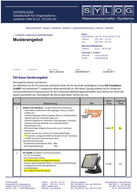 Musterangebot Wawi Ls600 1 Edi Sylog Kg
